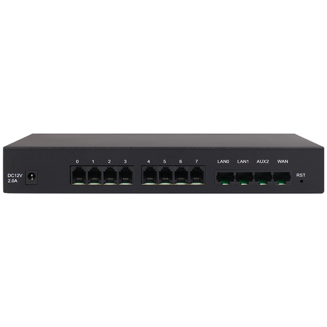 DAG1000-8O一款多通道高接入型网关,为小型企业,家庭式办公,远程办公室和多分支企业提供了一个低成本,操作简单的IP语音电话解决方案。支持8个FXO语音接